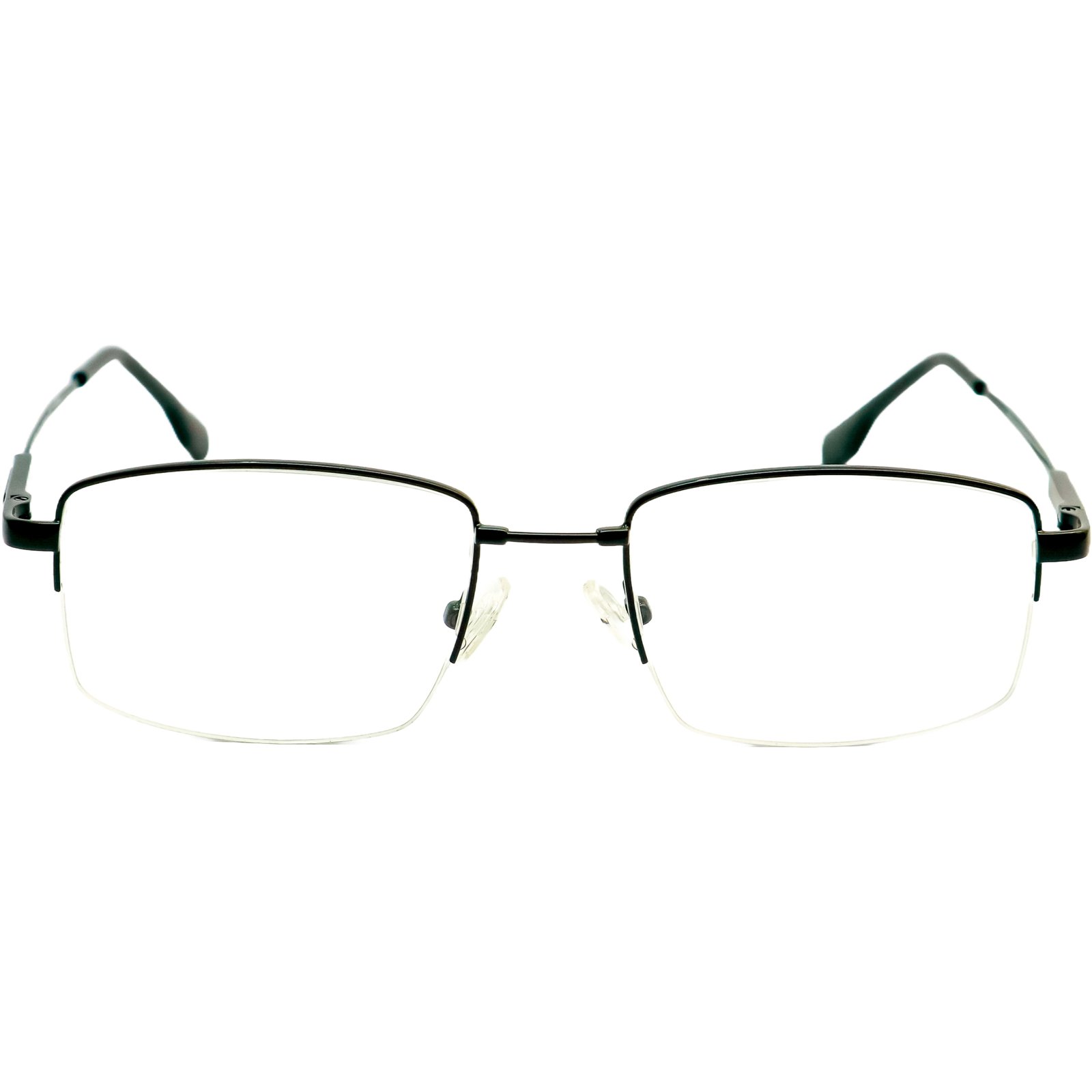 Para o homem que busca um design clássico com sofisticação e conforto, esta armação meio aro é a escolha ideal. O formato retangular em metal, com um acabamento sóbrio, oferece um visual sério e elegante, perfeito para o ambiente corporativo e ocasiões formais.
