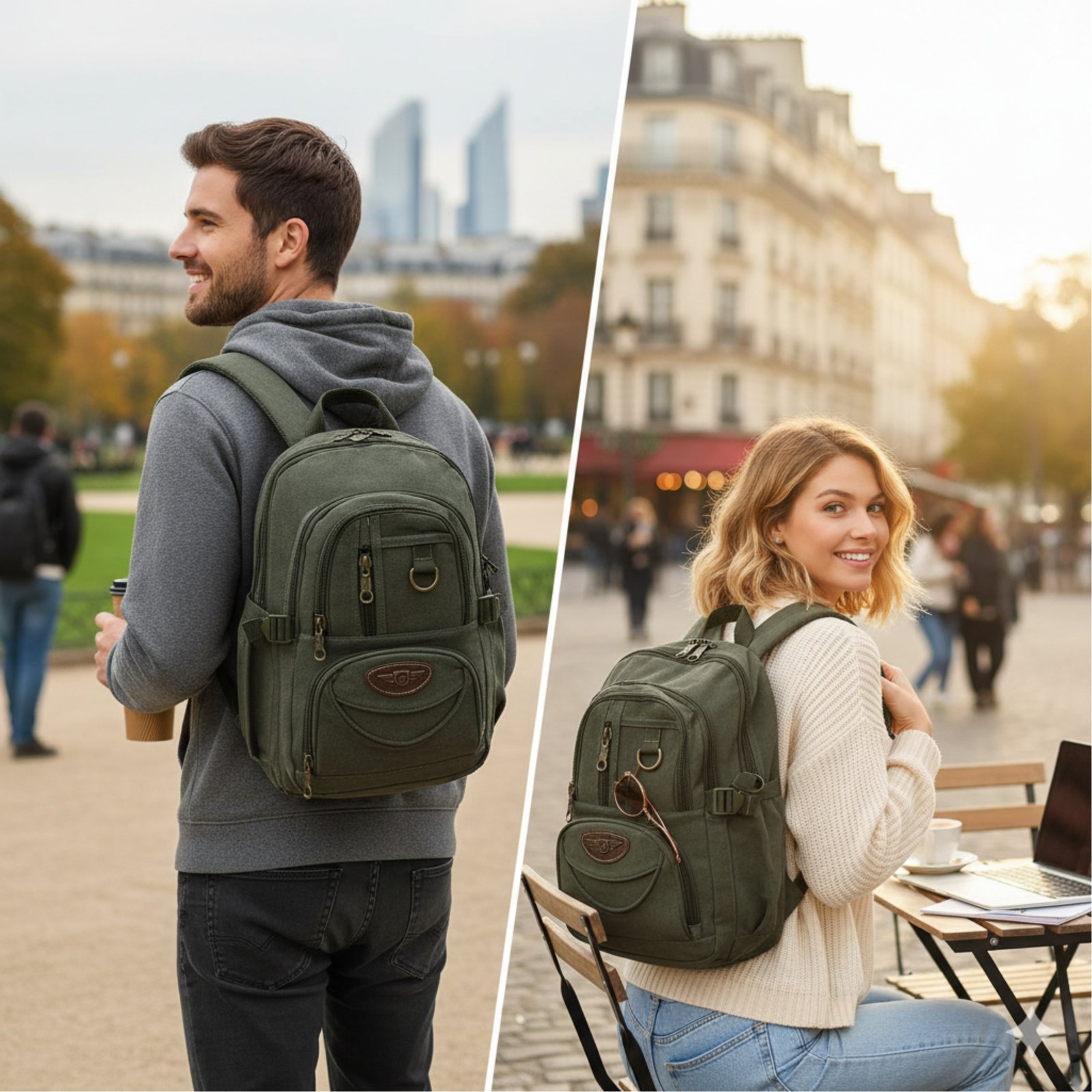 Perfeita para o uso diário, esta mochila combina o charme atemporal da lona (canvas) com um design moderno e super organizado. É ideal para quem busca praticidade, segurança e um visual despojado.